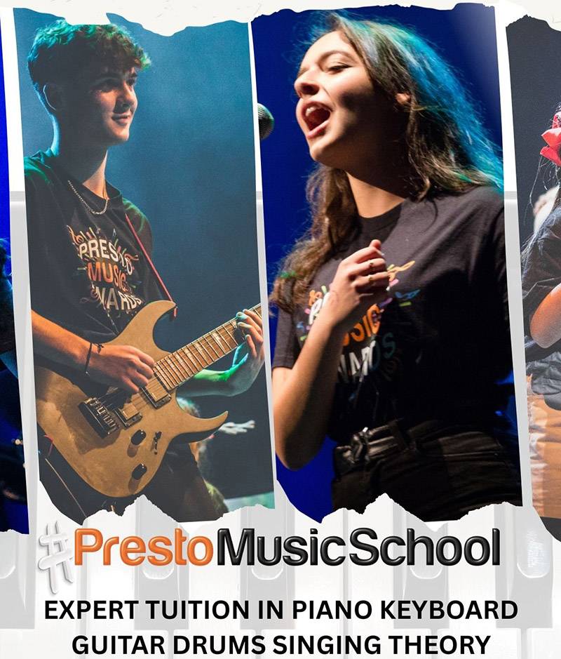 Presto Music School offers lessons and graded exams in Piano and Keyboard for ages 4+ and Drums, Guitar, and Vocals for ages 7+. We also offer best-in-class online courses in Music Theory and Composition. You can even take your passion for music as far as a Diploma.
